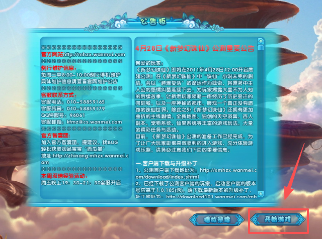 2、阅读公告版上的内容,点击开始游戏。