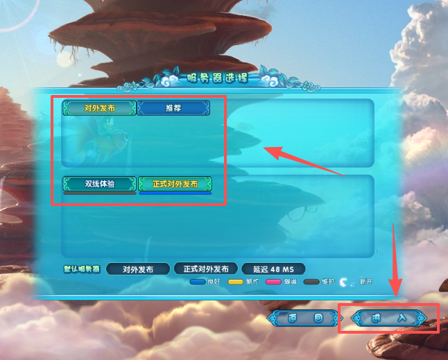 4、点击服务器选择,可以选择服务器,不选择将进入默认服务器。