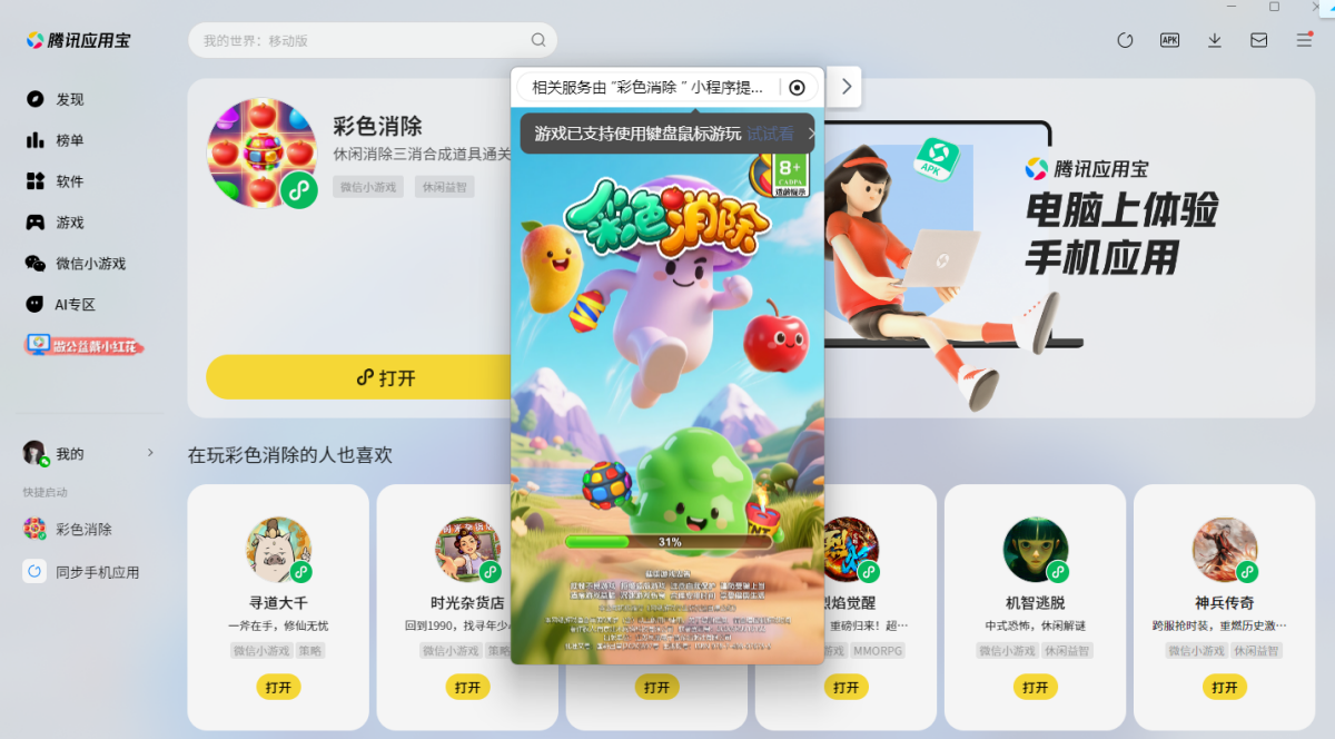 第一步:点击下载应用宝客户端(已安装会直接调用打开)