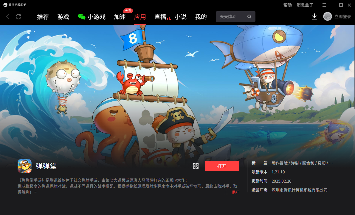 《弹弹堂》是腾讯首款休闲社交弹射手游,由第七大道页游原班人马倾情打造的正版IP大作!趣味性极高的弹道抛射对战,通过不同道具的战术搭配,根据抛物线原理发射炮弹来命中对手或破坏地形,最终击败对手,取得胜利!
