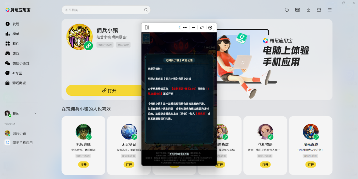 第三步:登录后直接拉起【佣兵小镇】微信小游戏,就可以畅玩了