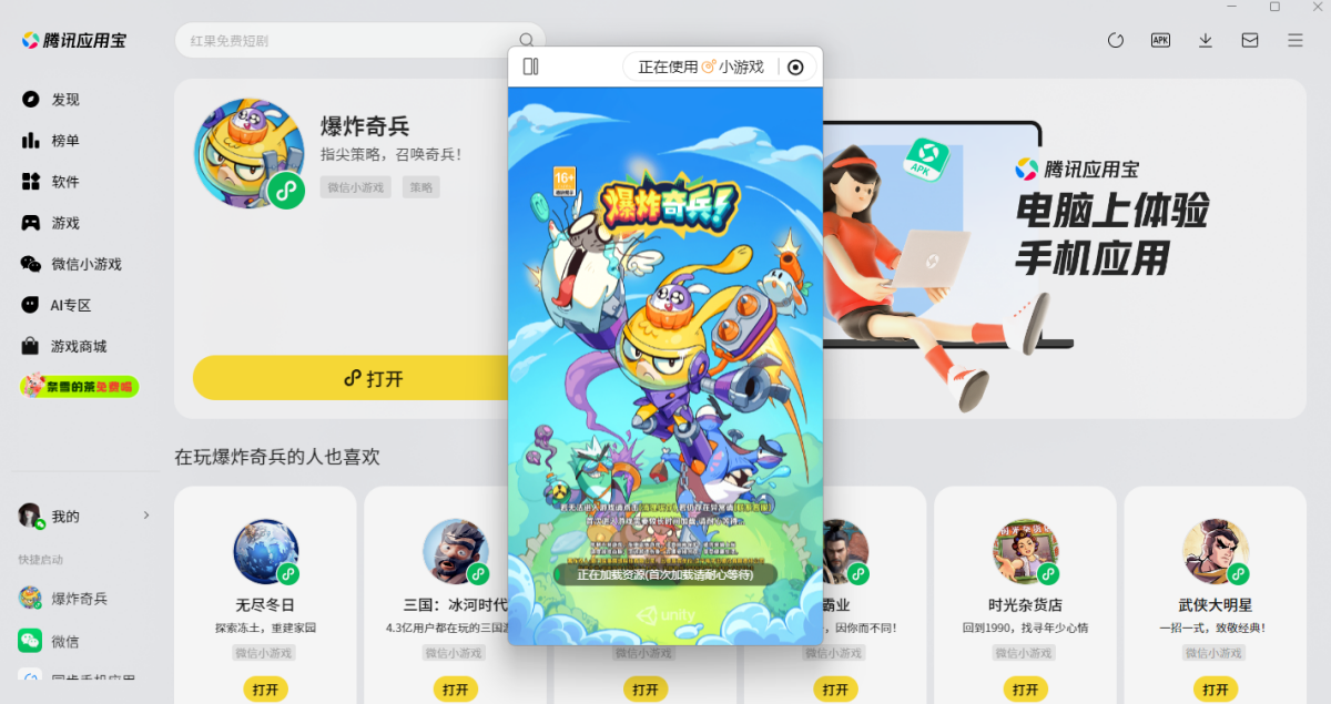 第三步:登录后直接拉起【爆炸奇兵】微信小游戏,就可以畅玩了