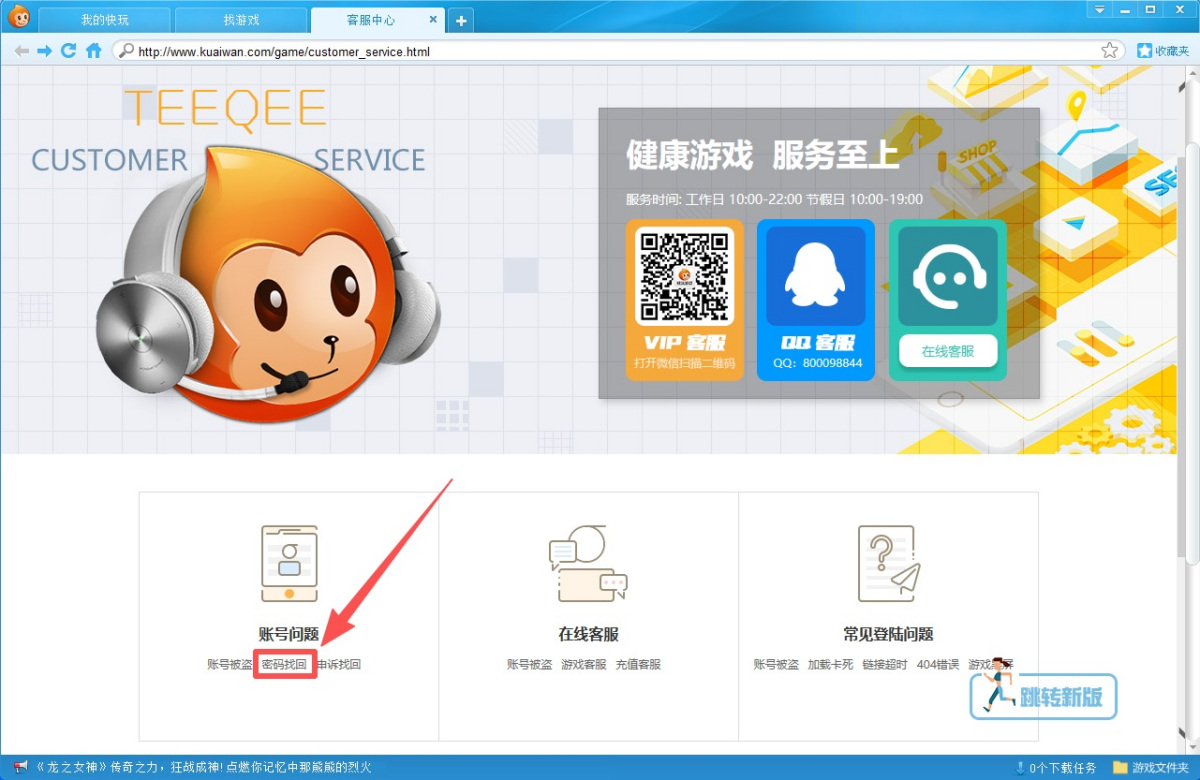如何找回快玩游戏盒的登录密码