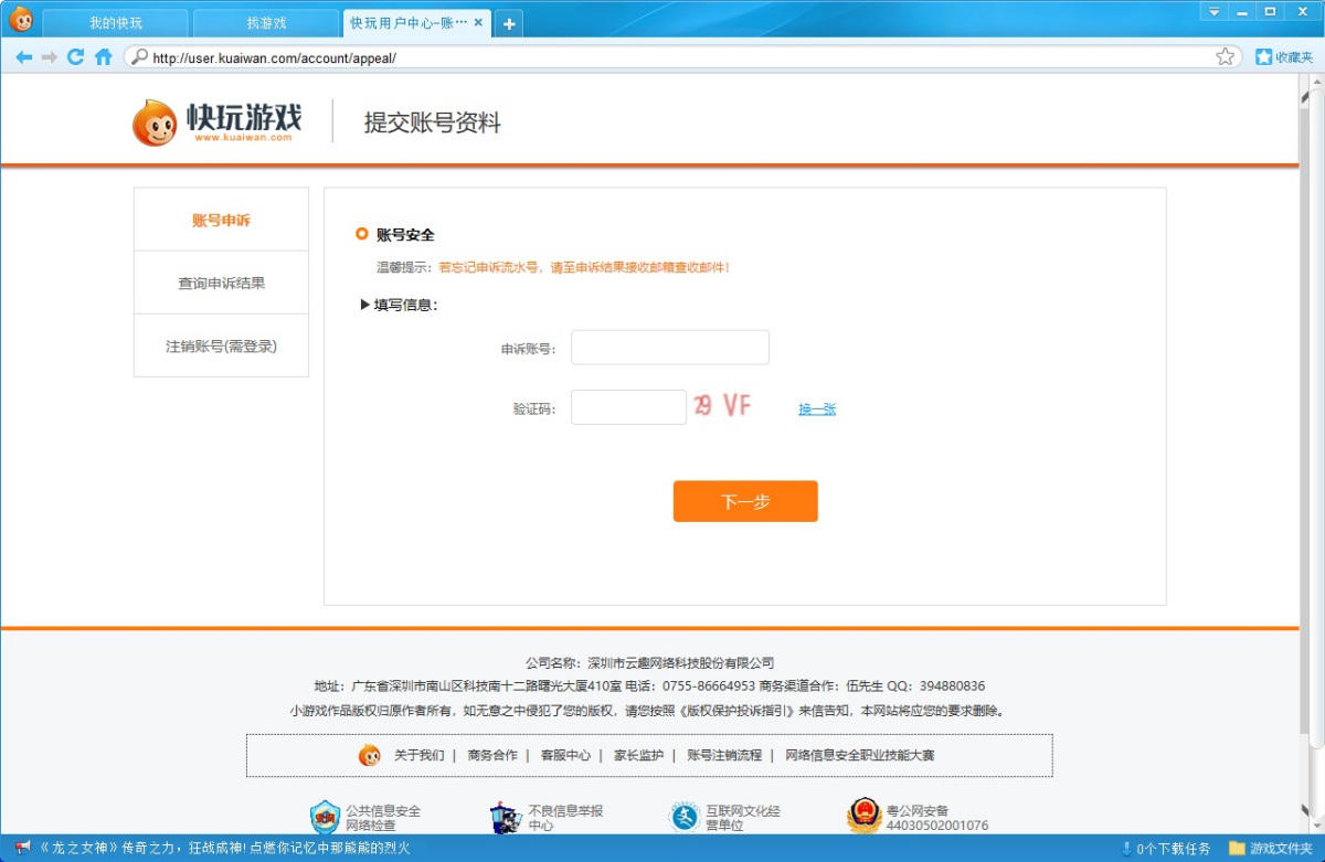 步骤3、在此您可以进行账号申诉