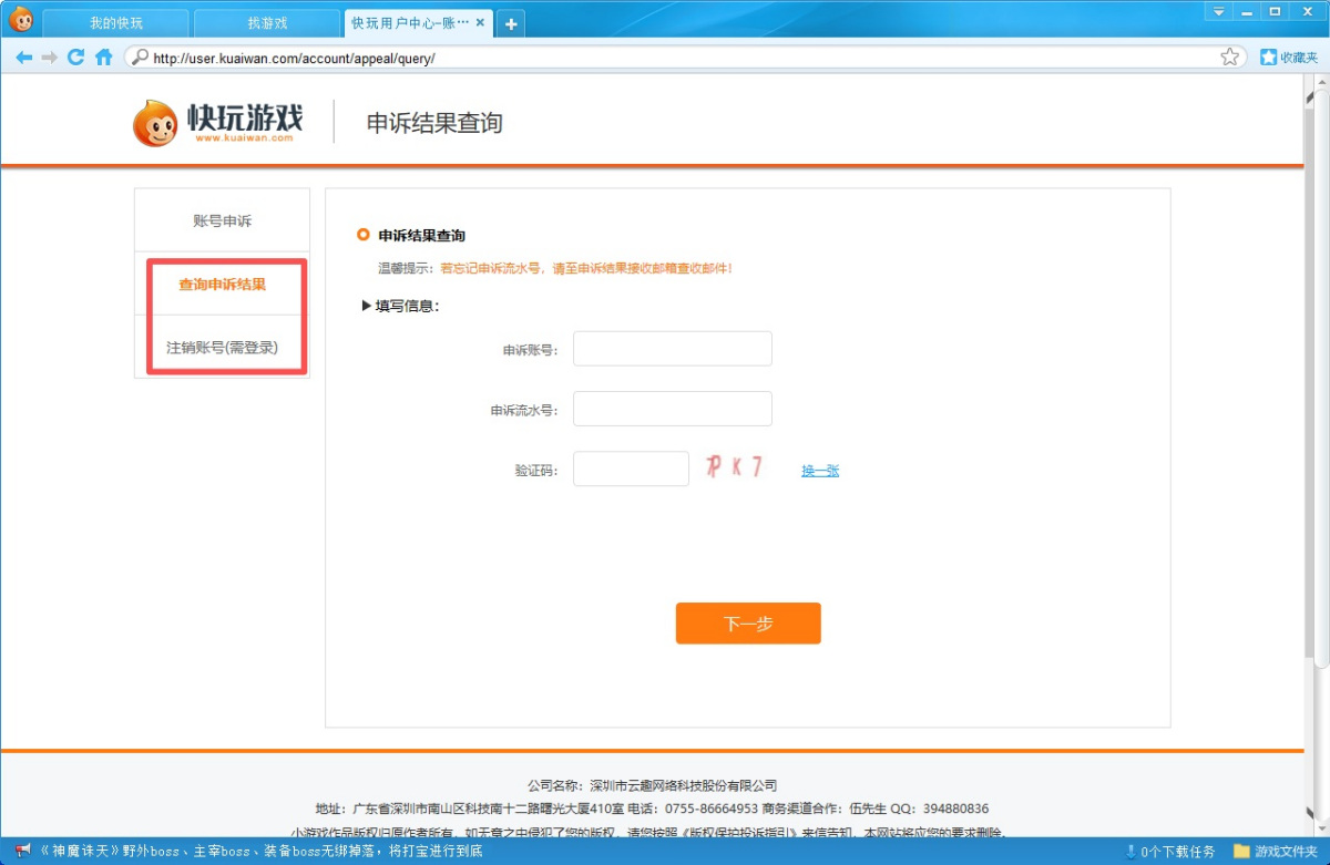 步骤4、还可以查询申诉结果和注销账号