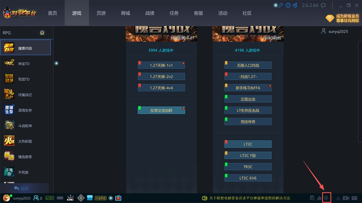 1、打开11对战平台客户端,点击主界面右下角【设置】
