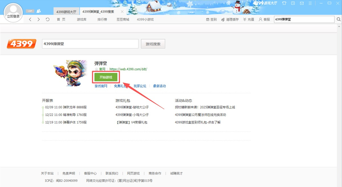 步骤3.跳转游戏界面后,点击【开始游戏】,即可畅玩弹弹堂游戏