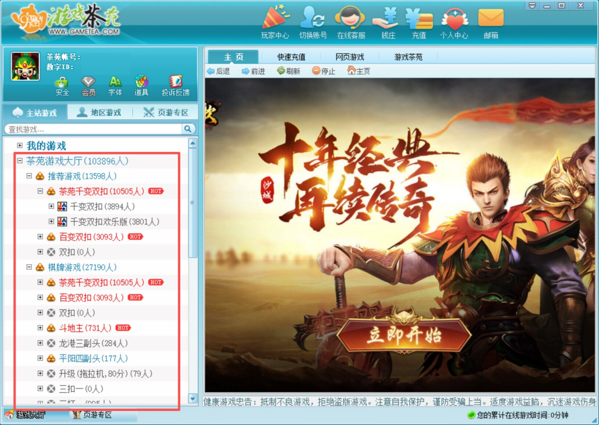 1、打开游戏茶苑客户端,在左侧【茶苑游戏大厅】中选择您想玩的游戏。