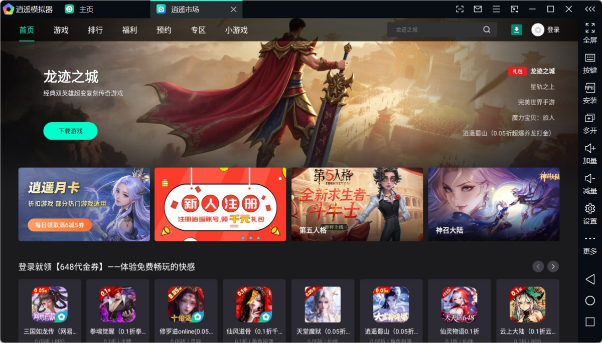 4、海量首发游戏:逍遥模拟器内市场收录海量手游和应用,及时更新官方首发游戏,抢先体验各种大作,电脑上玩手游,账号数据可以和手机互通。