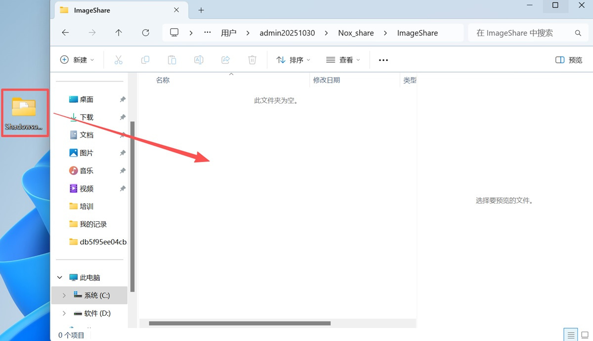 步骤4、将想拖拽进模拟器的文件直接拖拽至【ImageShare】文件夹中(支持大批量选中文件直接拖拽)