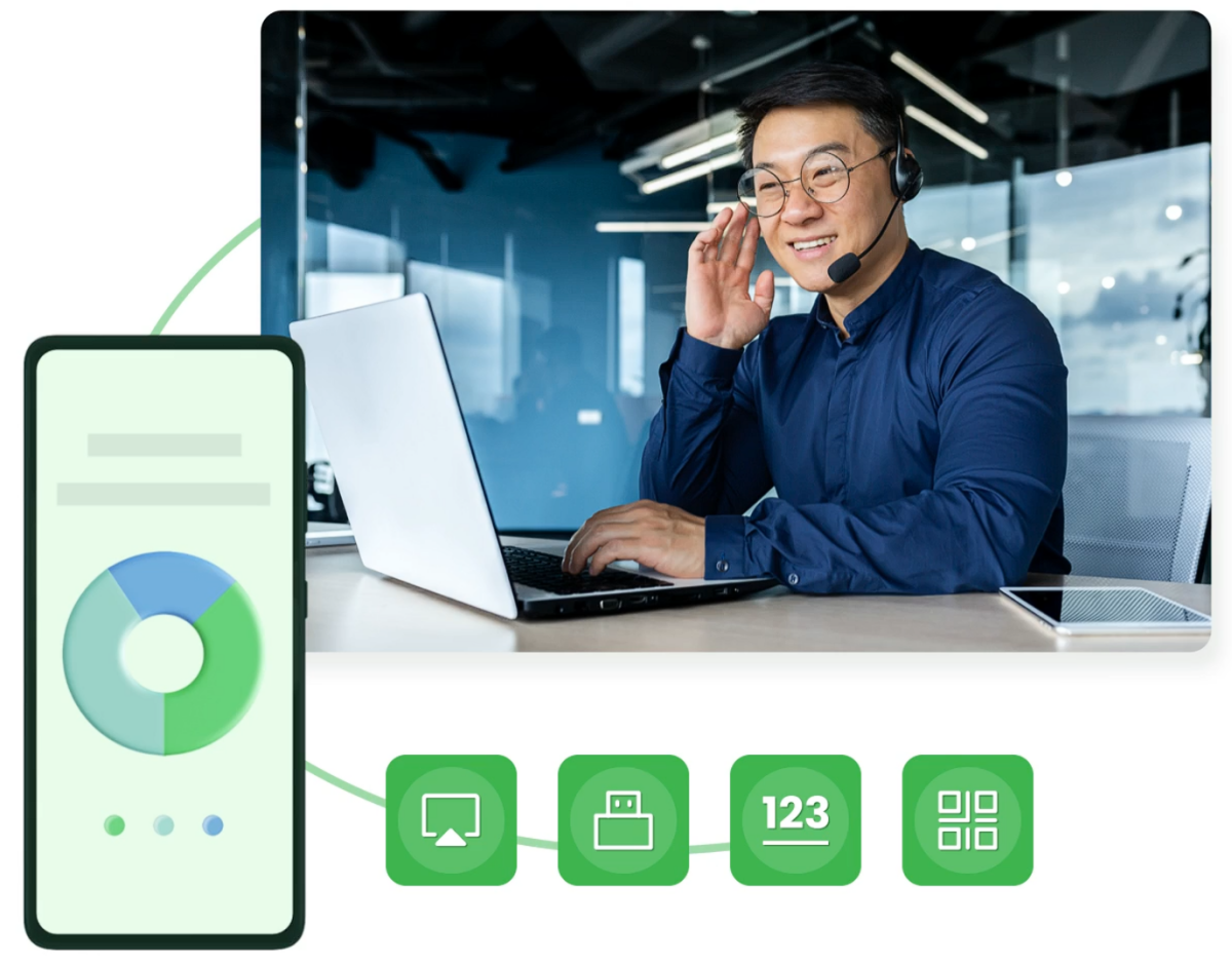 无论是展示移动应用程序、演示新功能,又或者是在 PC 端和移动端之间频繁切换,AirDroid Cast 都能一键轻松实现多屏幕共享,即刻提高工作效率。