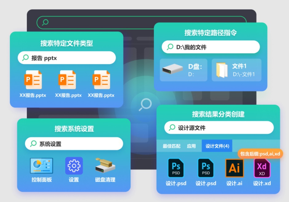 小智搜搜,搜索快速启动的第二桌面。用户可通过多样的搜索技巧搜索任意本地内容、双击ctrl随时调用。自定义标签页管理启动数据,快捷文件夹快速启动本地数据,轻松打造个人资源库;运用工具释放你的生产力,支持自定义快捷键,快速启动系统及效率工具,如OCR文字识别、PDF转换、图片转文字等。比everything文件搜索、Rolan、listary更加智能、精准、快速的一款工具软件。