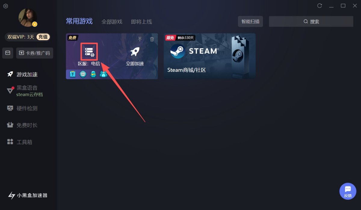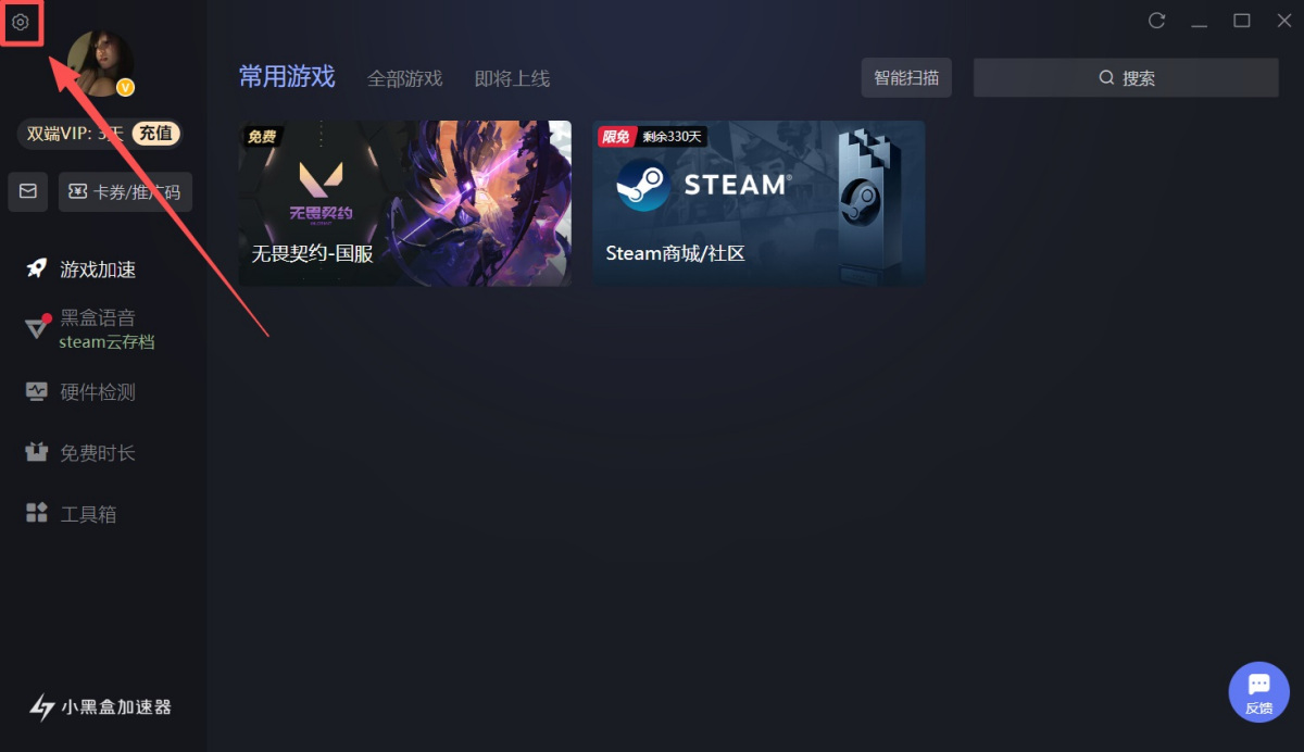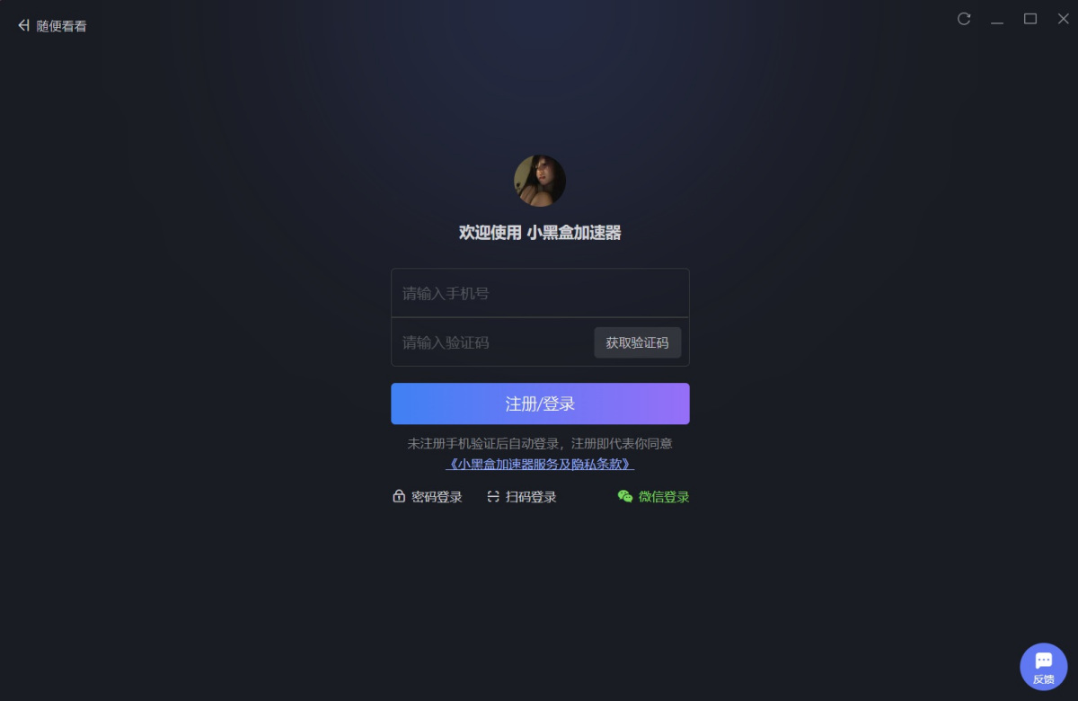 1、打开小黑盒加速器客户端,先点击左上角【头像】进行登录/注册。