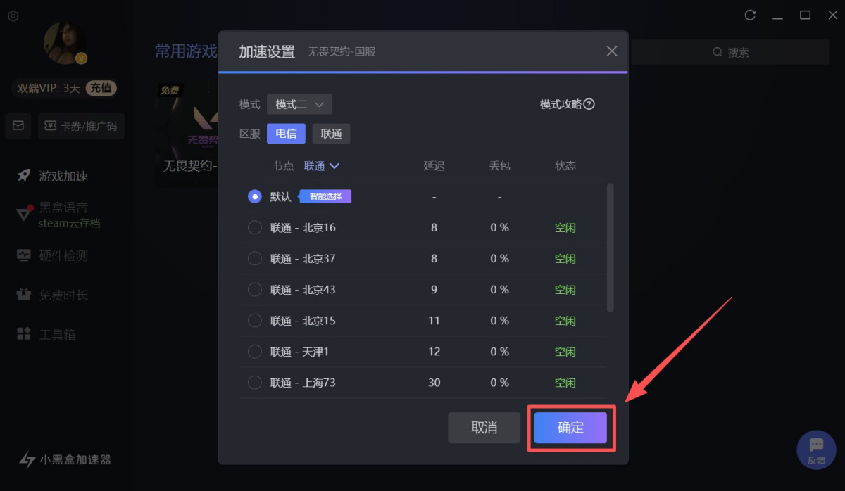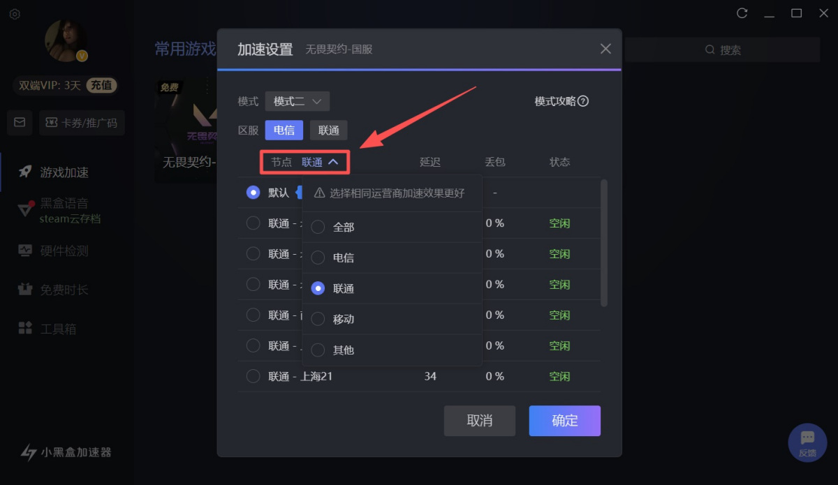 ●模式一:适用于官方服务器的游戏。需先在工具箱内安装虚拟网卡,如果模式一加速没有效果,请尝试使用其他模式加速。