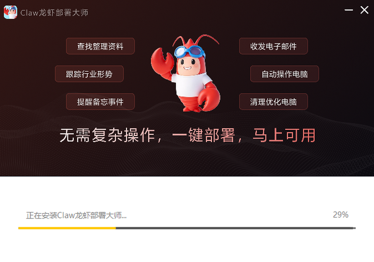 Claw龙虾部署大师,真有用能做事的7*24小时全能AI助理,自动化本地部署,真有用龙虾机器人即刻上岗,适用于整理文件、读写文档、批量处理数据、定时任务、网页操作、信息查询、代码开发、脚本运行、自动化任务等,覆盖办公、生活、开发等多场景需求。