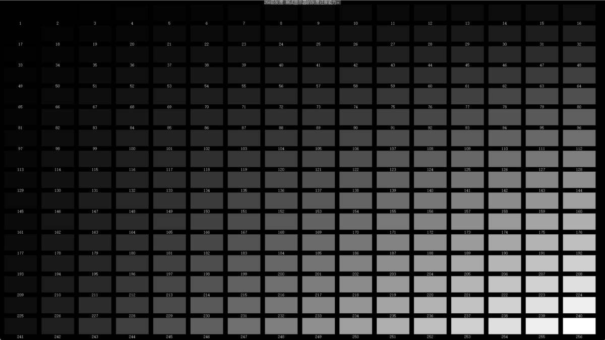 4、256级灰度:测试显示器的灰度还原能力。