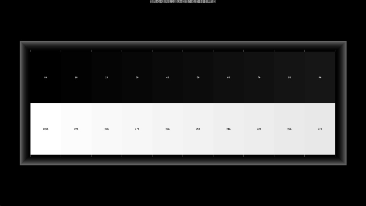 3、灰度:测试显示器的灰度还原能力,看到的颜色过渡越平滑越好。