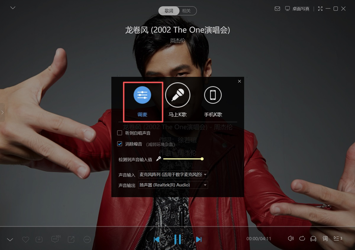 步骤4、调麦后,再点击【马上K歌】,就可以跟着歌词和伴奏进行K歌了