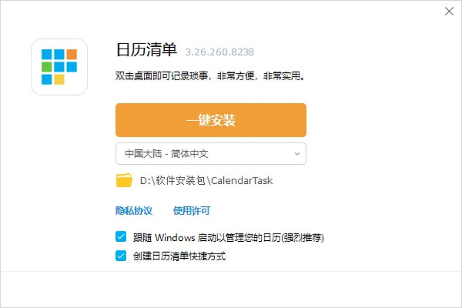 日历清单,可以透明的显示在桌面壁纸上,提供农历、节气、节假日、法定假日显示。双击即可编辑记录琐事、日程安排、重复任务等,还可以微信提醒。支持多端同步数据,实时共享数据,团队协作。