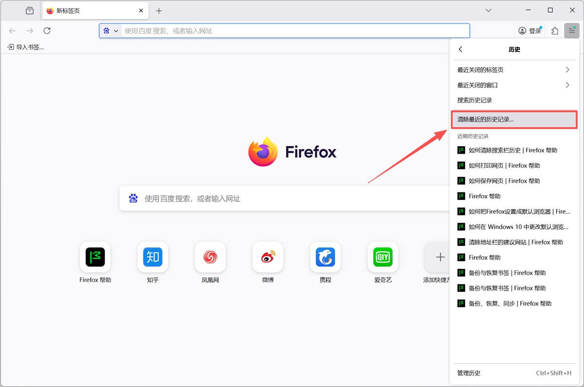 步骤2、在历史中选择【清除最近的历史记录】