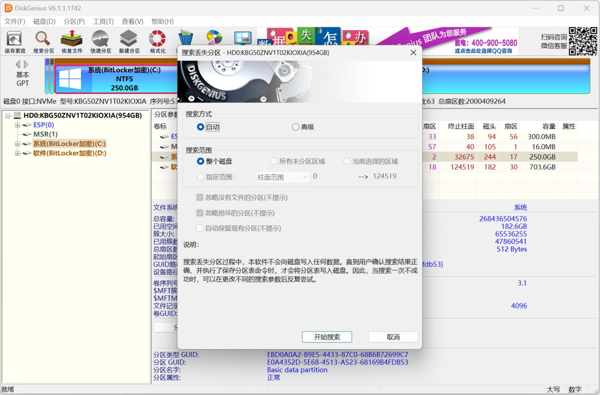 2、恢复文件功能支持扫描未解锁状态的BitLokcer加密分区。
