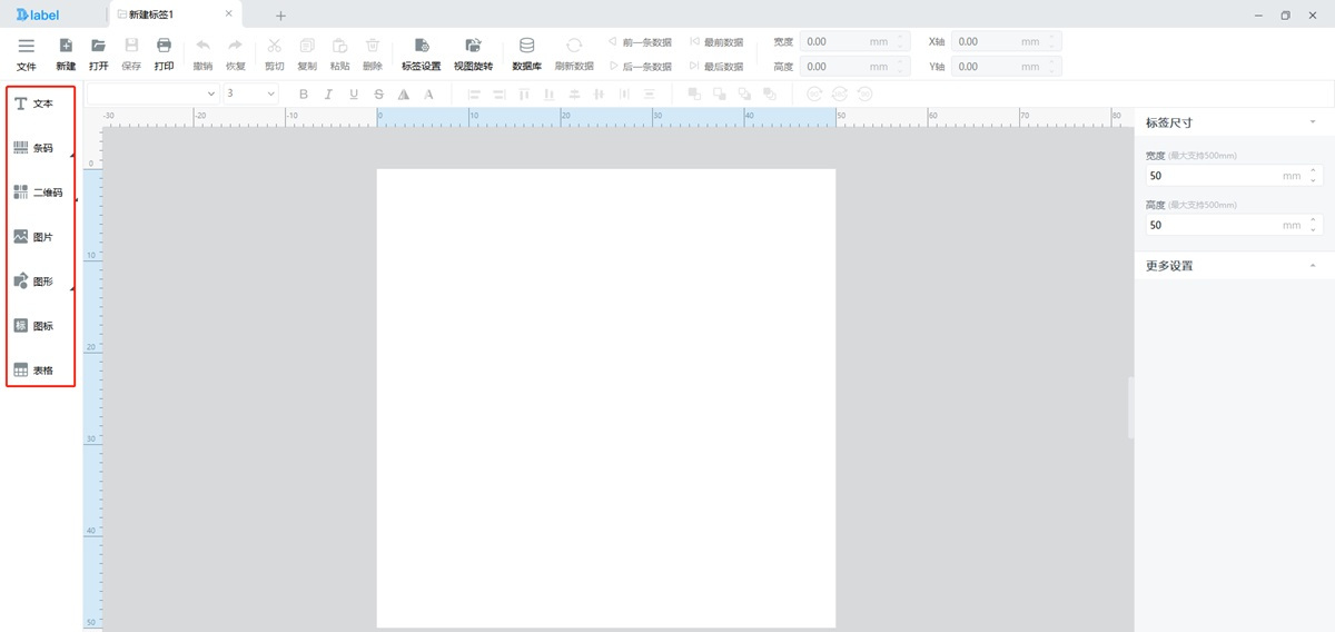 顶部栏,常见的标签文件编辑和保存操作,可详细调整标签内容的高度、宽度及对应的位置。