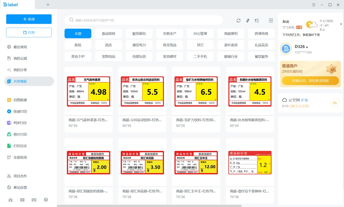 内置服装、商超、食品、珠宝、物流和零售等行业模板,海量样式任您选择,满足各行各业的使用需求。