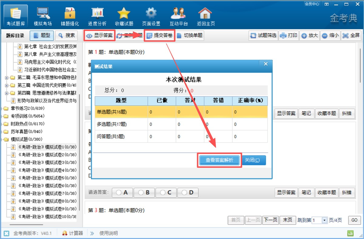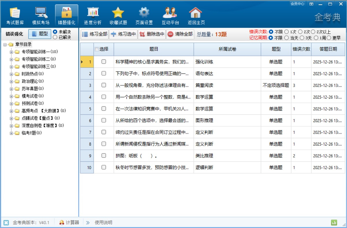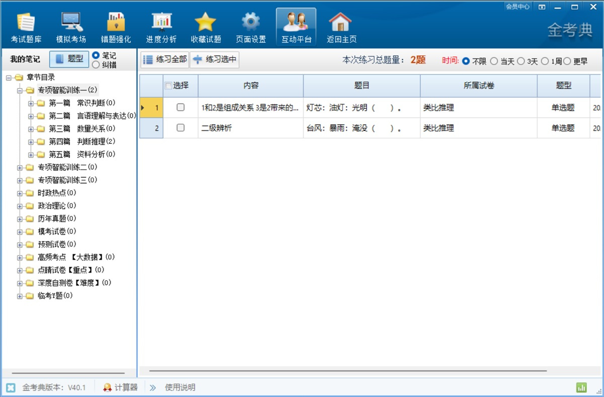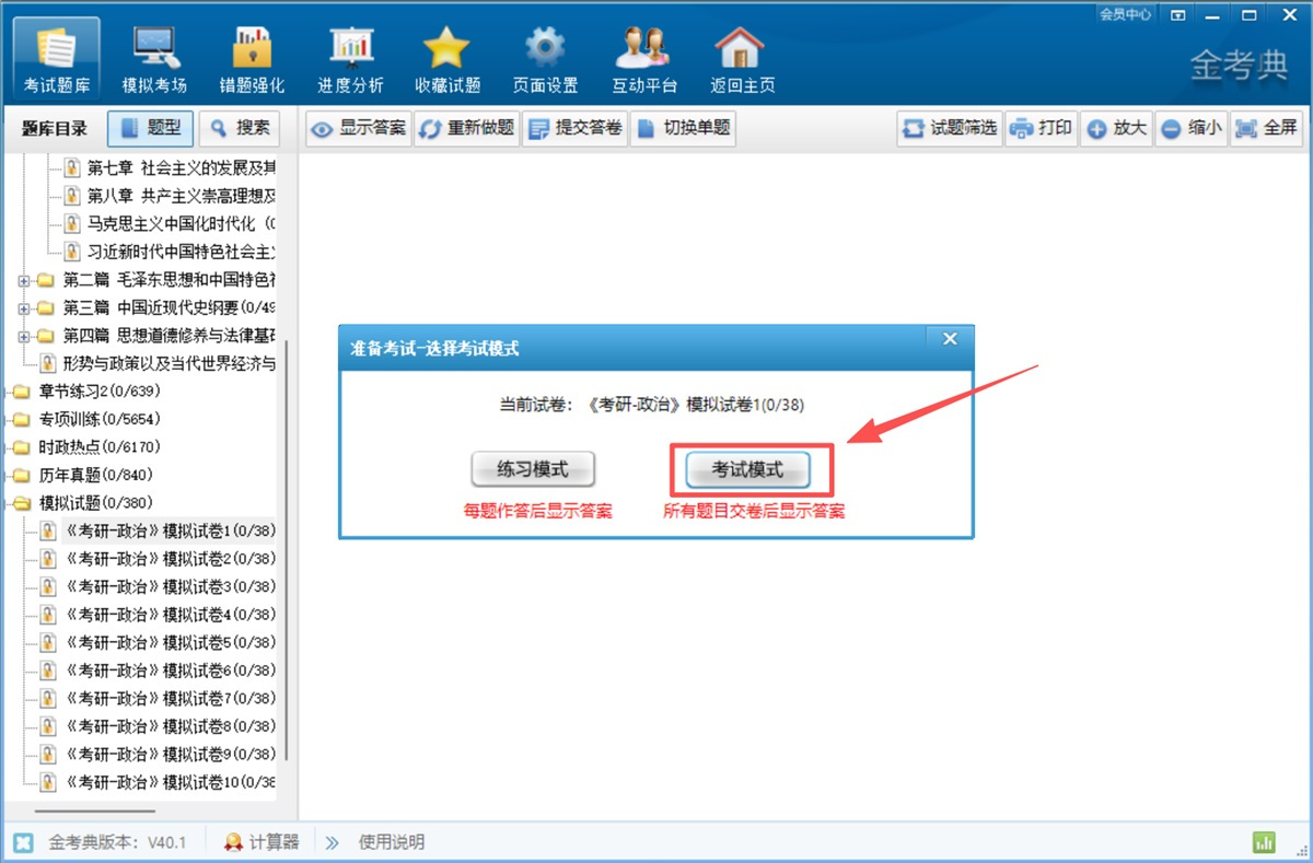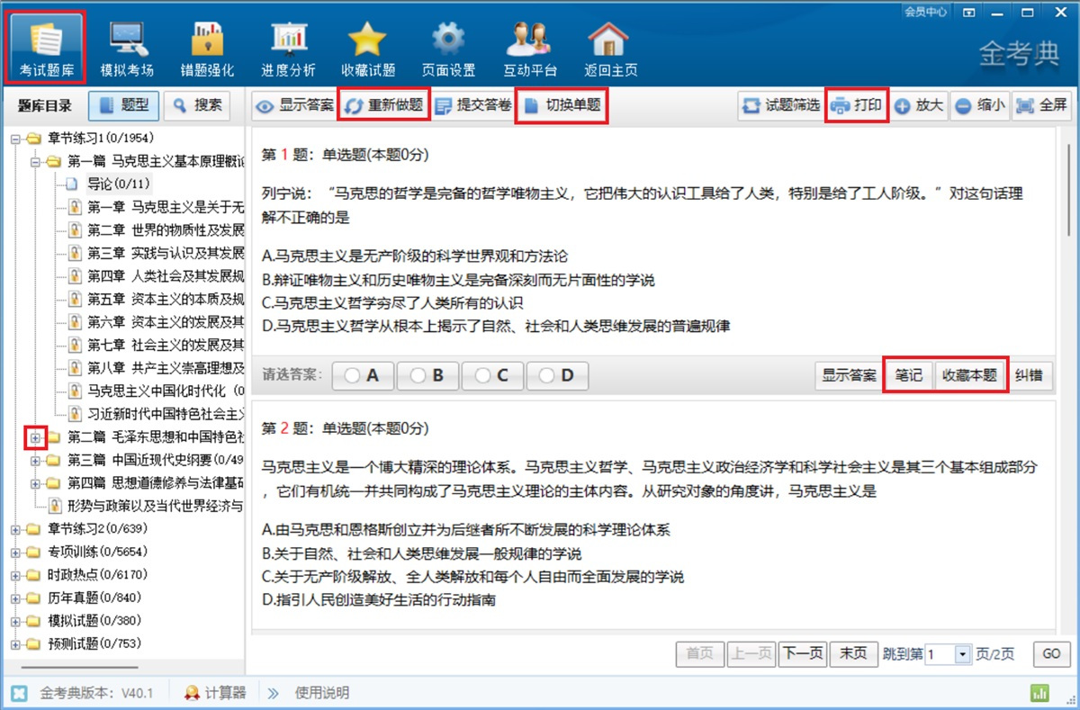 金考典提供适合考试新变动的题库,实时更新,帮您应对变化的考试!功能齐全的做题系统,按照新的考试大纲编辑,有配套的章节习题(部分科目含真题章节),历年真题,预测模拟题,考前押题,非常适合备考执业考试的小伙伴们。