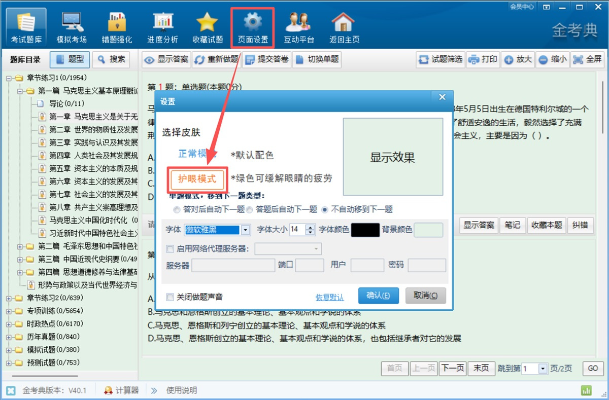 3、可以点击顶部【页面设置】,开启护眼模式,缓解眼疲劳。