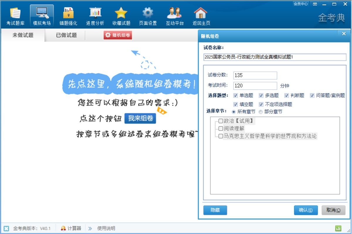 ●随机组卷,每次从软件中随机抽取试题组成一套模拟卷,避免固定顺序产生的干扰