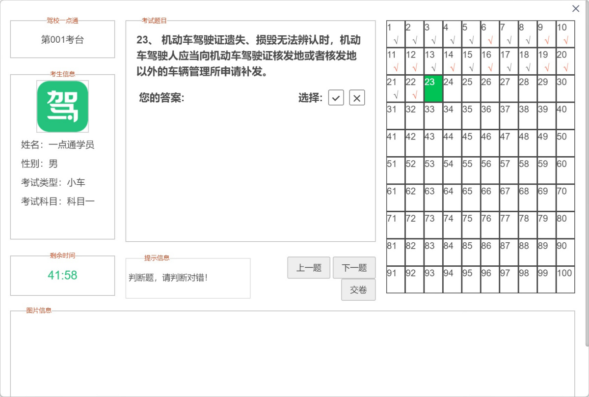 ●真实考场模拟:100%仿真车管所考试系统界面,并按照大纲规定智能组卷,检测效果绝佳。