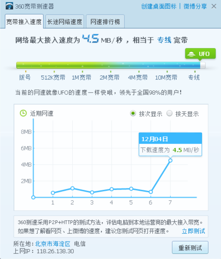 测试宽带接入速度采用P2P+HTTP的测试方法,评估电脑到本地运营商的最大接入带宽