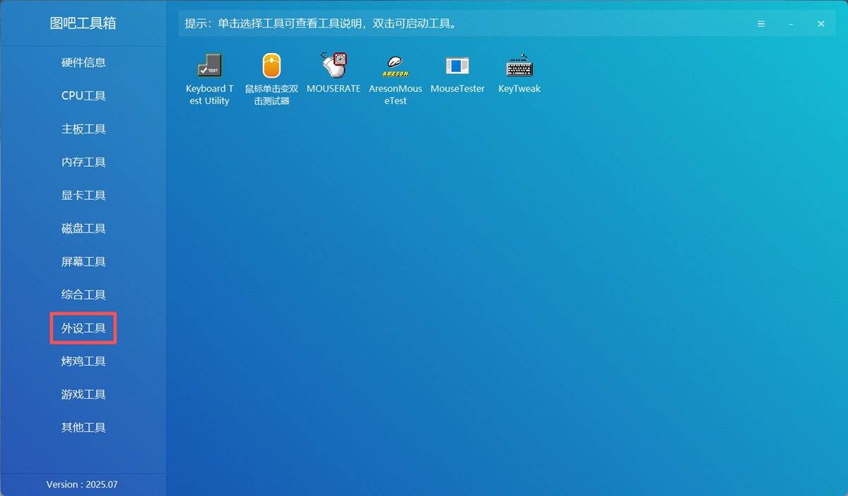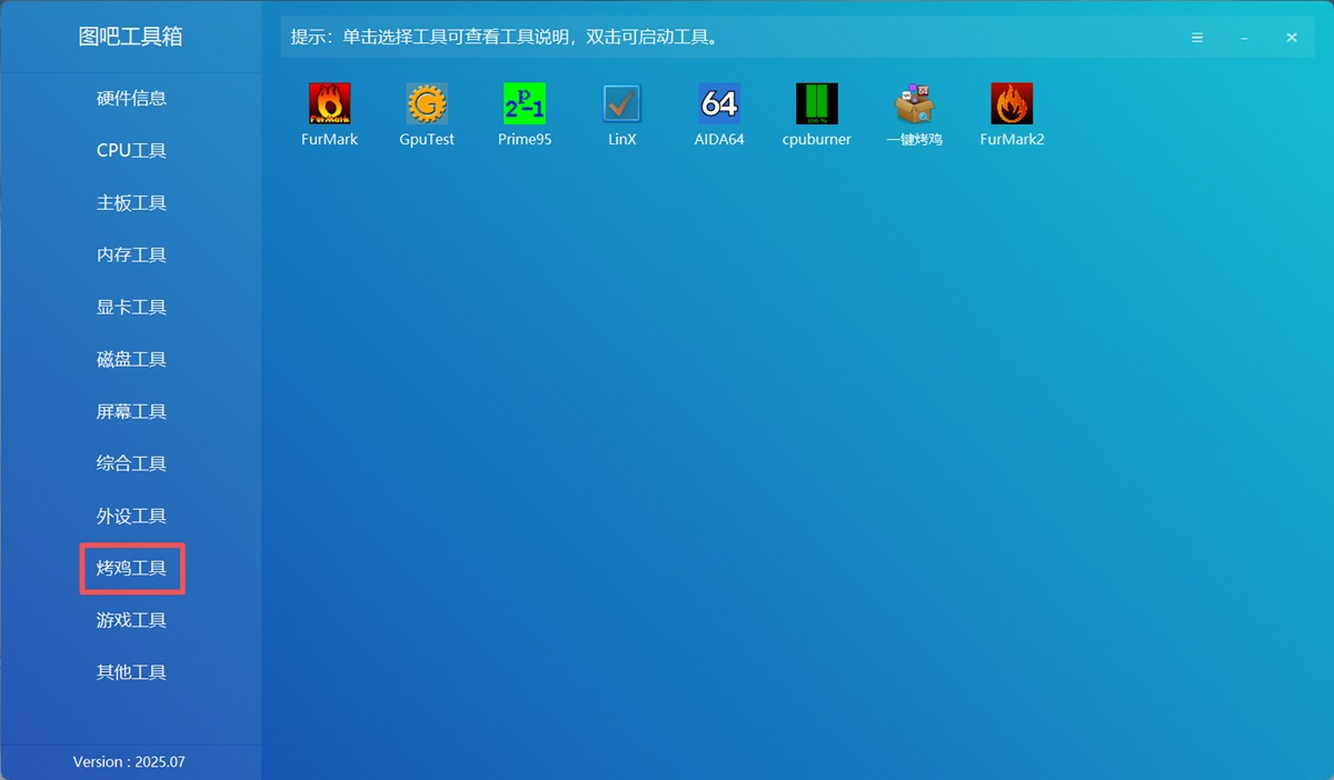 图吧工具箱是一款非常优秀的系统优化软件,软件汇聚了硬件信息、CPU工具、内存工具、显卡工具、硬盘工具、屏幕工具、综合工具、外设工具、烤机工具等十几类上百个硬件检测工具。图吧工具箱官方版是用户进行软件检测的最好帮手,是一款非常实用的软件。