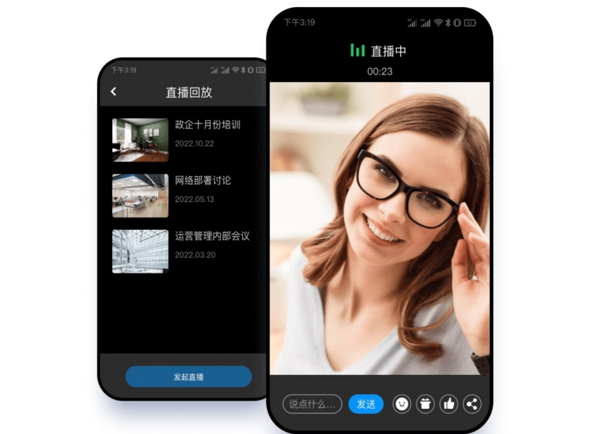 支持会议直播功能,可将重要会议内容实时推送给数千名观众,适用于需要广泛传播的场景。