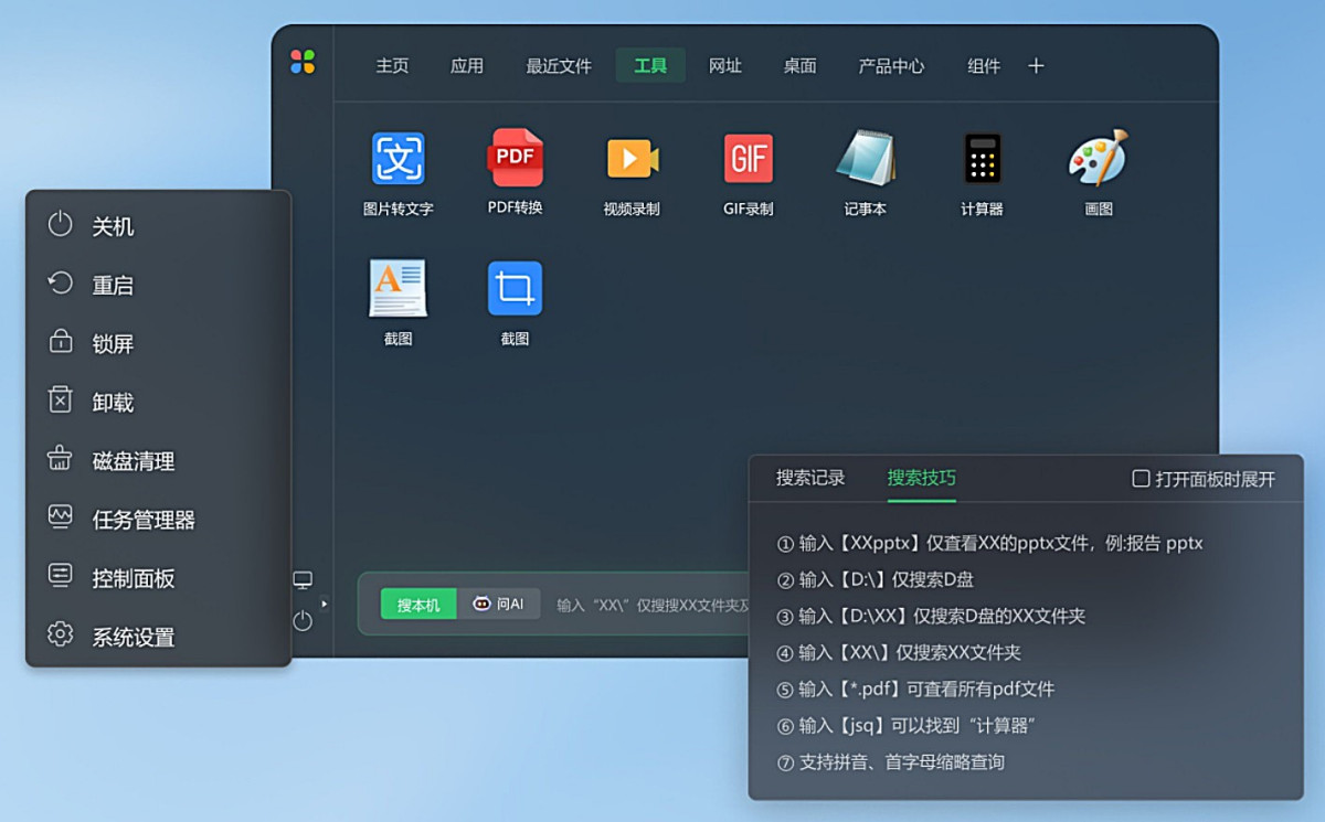 2、快捷启动提效:快速搜索本机文件、应用、系统设置;快速添加和启动应用、文件、网页;