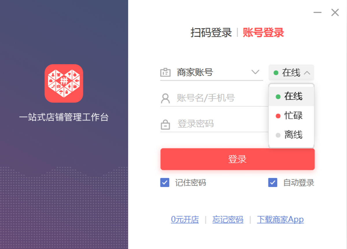 为支持子账号绑定手机号可重复,子账号将于即日起仅支持使用“账号名+密码”或扫码方式登录商家后台/商家APP/Windows客户端/微信公众号绑定(不再支持手机号+密码方式登录)。